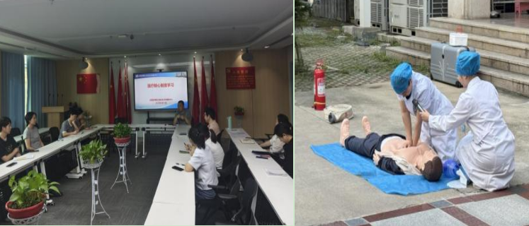 ▲琴断口中心组织医疗核心制度的学习及急救技能演练