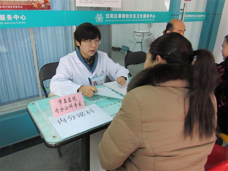 武汉市五医院和本中心联合与2015年2月7日上午九点,在翠微街社区卫生服务中心在门诊大厅开展了社区公益义诊活动,通过悬挂横幅,发放宣传折页等方式进行宣传,并为前来咨询并有需要的居民进行免费身体体检,五医院有6名专家到场,本院有5名工作人员参加,接受咨询人数36人,发放宣传资料50份。